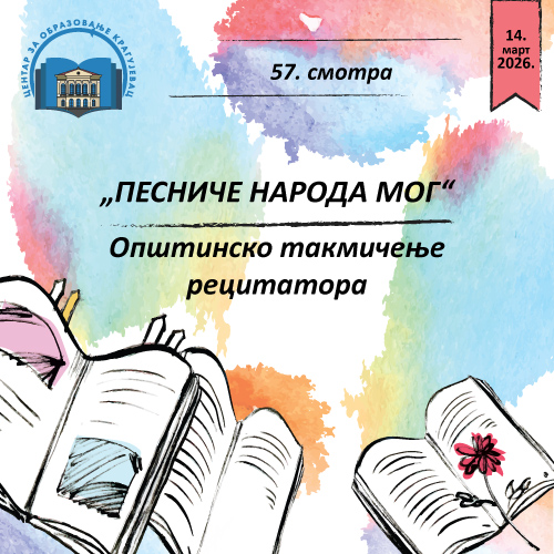 Центар за образовање Крагујевац, ОЈ Центар за рад са талентованом децом, организује 68. Регионално такмичење талентованих ученика. У суботу, 18. 04. 2026. године, у Првој крагујевачкој гимназији ће бити организовано такмичење за следеће предмете: У недељу, 19. 04. 2026. године, у Првој крагујевачкој гимназији ће бити организовано такмичење за следеће предмете: У понедељак, 20. 04. […]