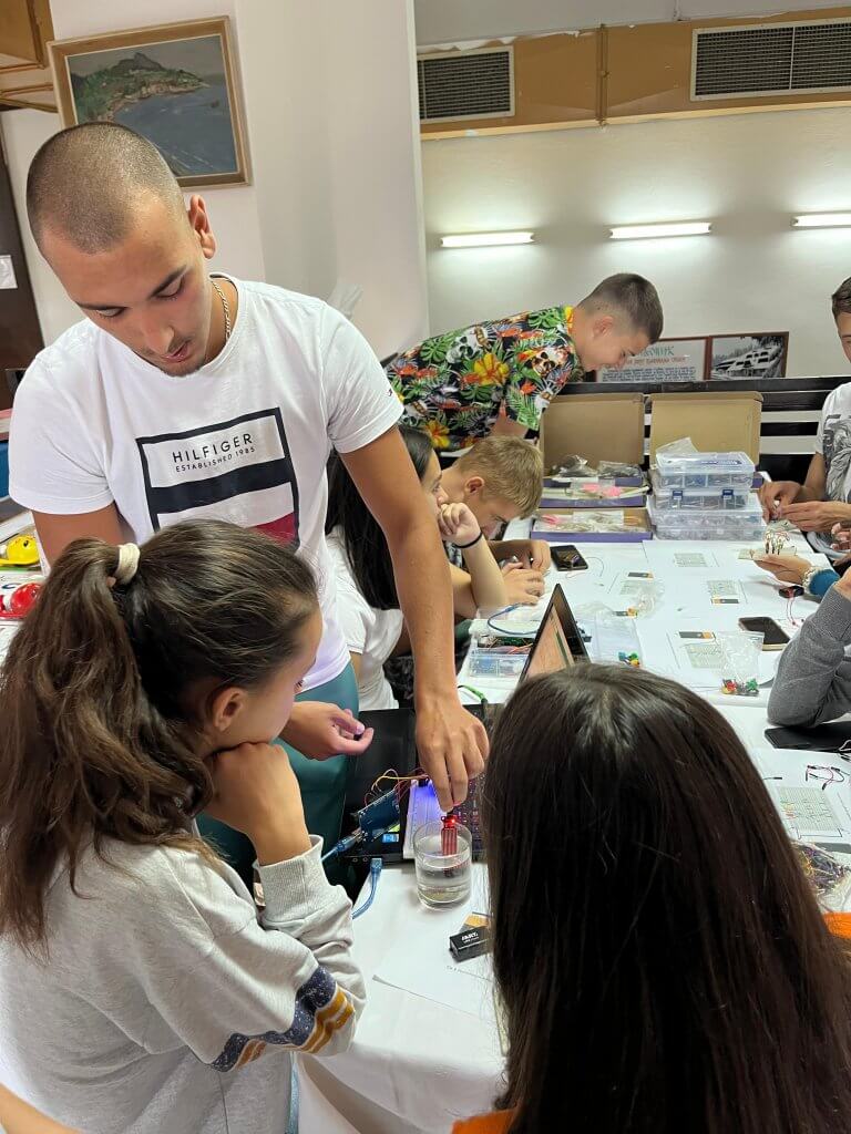 Радионица – роботика – Arduino сензорика – Ultrasonik sensor повезивање на матадор плочу-Arduino сензорика – Ultrasonik sensor програмирање вештачког чула у специјалном софтверу-Arduino сензорика – Ultrasonik sensor; Провера функционалности модела са објашњењем кода. Најактивнији учесници су били: Андрија Ђукић, Ади Шабанлија и Ђорђе Капетановић. Реализатор – Милкица Костић, професор технике и информатике;