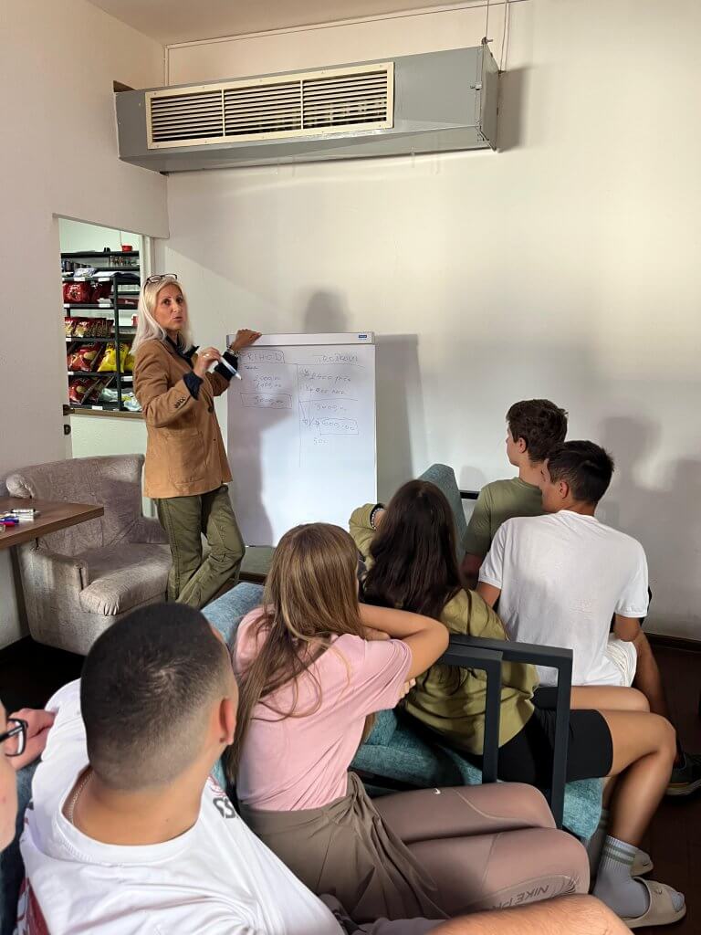Радионица из економије – Реч о економији – упознавање са економијом. Ученици свакодневно имају прилику да слушају економске термине који су за њих само речи. На радионици су разговарали о значају њиховог разумевања, значају финансијске писмености и како је она везана за наш живот. Како нас потребна знања и вештине из ове области не оријентишу на ту проблематику, већ нас оспособљавају да се понашамо рационално при доношењу финансијских одлука. Да будемо одговорни потрошачи, да разликујемо потребе и жеље, да планирамо и управљамо личним буџетом. Ученици су активно учествовали у раду. Реализатор – Данијела Талијан, дипломирани економиста;