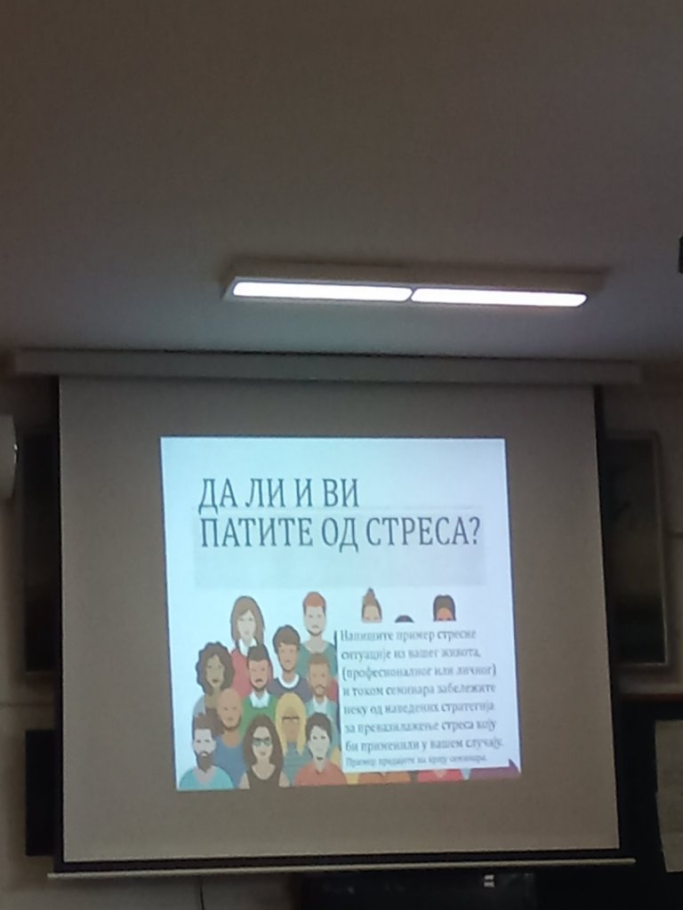 Истог дана одржан је семинар у ОШ“Станислав Сремчевић“ под називом “Програм управљања стресом наставника и ученика, Зашто зебре немају чир“,каталошки број 149. Аутори и реализатори овог семинара су Тамара Ђорђевић Николић, Дипломирани биолог, Шеста београдска гимназија, Биљана Гавовић и Љубица Лалић из Београда. Учесници семинара били су наставници ове школе.